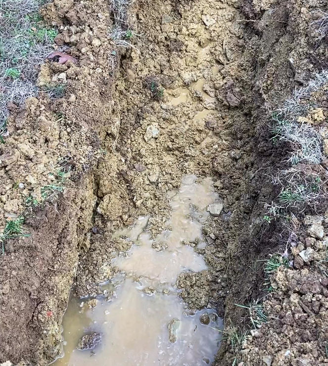 This is your basic French Drain situation. This was a 4 bedroom house with a 1500 gallon septic tank, Aqua Safe 600, 1500 Pump Tank, and American Automatic Drip Package. The tanks were together at the bottom of a mounded-up paved driveway. Surface water was coming off the impermeable driveway and going across the tanks. An open ditch pipe that collected water from the street above was also getting discharged above the tanks. The homeowner would get alarm conditions during rain events because of the surface water and subsurface lateral water movement would seep around the previously excavated dirt around the tanks and infiltrate the mid-seam pump tank. This would cause the ¾” disc filters in the headworks to become clogged from the silt that the infiltrating water brought, causing the pump tank water level to rise to high-water alarm conditions.